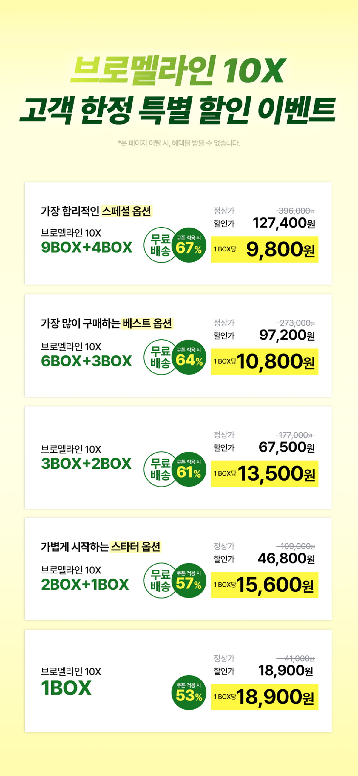 브로멜라인 10X의 주문량이 폭주하여 부득이하게 1일 판매량을 200개로 제한합니다.